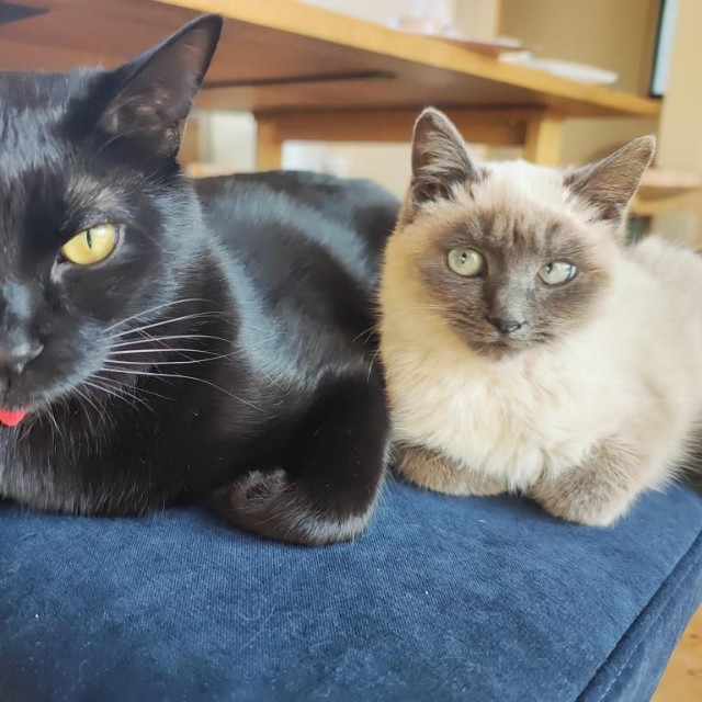 レイジュちゃんとは最初シャーシャーしていましたが、3日で一緒にごはんを食べられる関係に。子どもたち(もうすぐ4歳の双子)も積極的にお世話を手伝っています。まるで何年も前から家族だったかのように、自然になじんでいます。