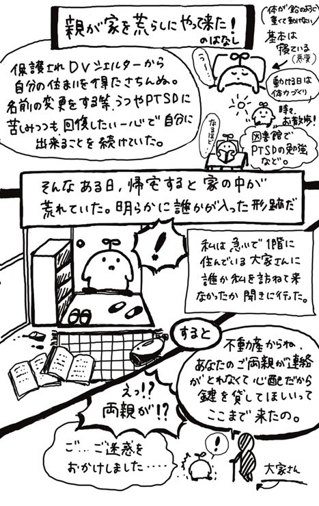 ところが、平穏は長く続かない。住民基本台帳法により、親は子の住所を取得できるため、両親に居場所を知られてしまう。