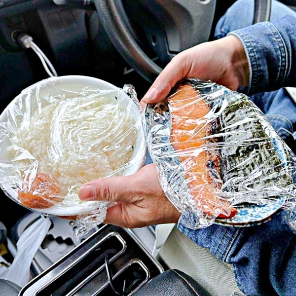 【写真】ラップをかけた皿を皿をそのまま持参!?すごすぎる(笑)