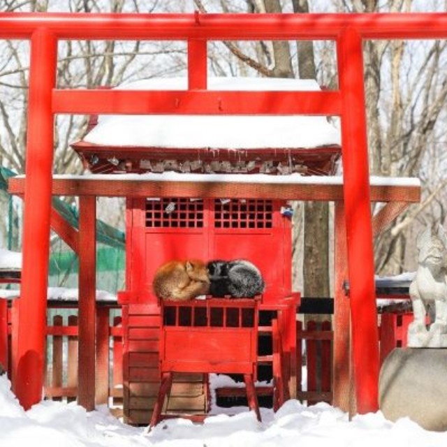 そんなコメントが添えられた写真が、話題になっています。。写っているのは、宮城県白石市福岡八宮にある「宮城蔵王キツネ村」内の御金稲荷神社(おこんいなりじんじゃ)。日本で唯一のキツネ専門の動物園として知られる「宮城蔵王キツネ村」の敷地内に鎮座する稲荷神社です。