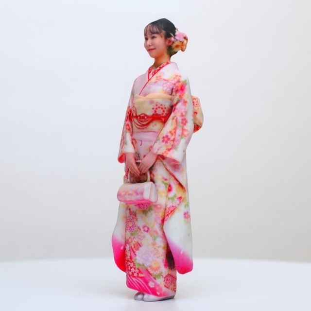 これらのフィギュアは、周囲を96台のカメラとプロジェクターライトで囲まれたブースで撮影された写真を3Dデータ化し、専用の3Dプリンターで制作されたもの。晴れ着の帯の折り目まで、リアルに再現されている