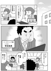 翌朝の朝礼、苛田はマーケティング部のメンバーの前で、これまでの態度を謝罪し深く頭を下げました。その姿を見た同僚は笑顔で「これからもよろしくお願いします」と声をかけます。離れた場所にいた柔木と同僚の真締真一(まじめ・しんいち)は、「なんか楽しそうやなぁ…」とほほ笑みながらマーケティング部の様子を見守るのでした。