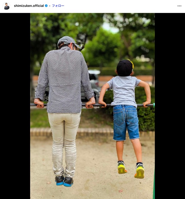 【写真】5年前にはこんなに身長差が 父と息子で並んで鉄棒