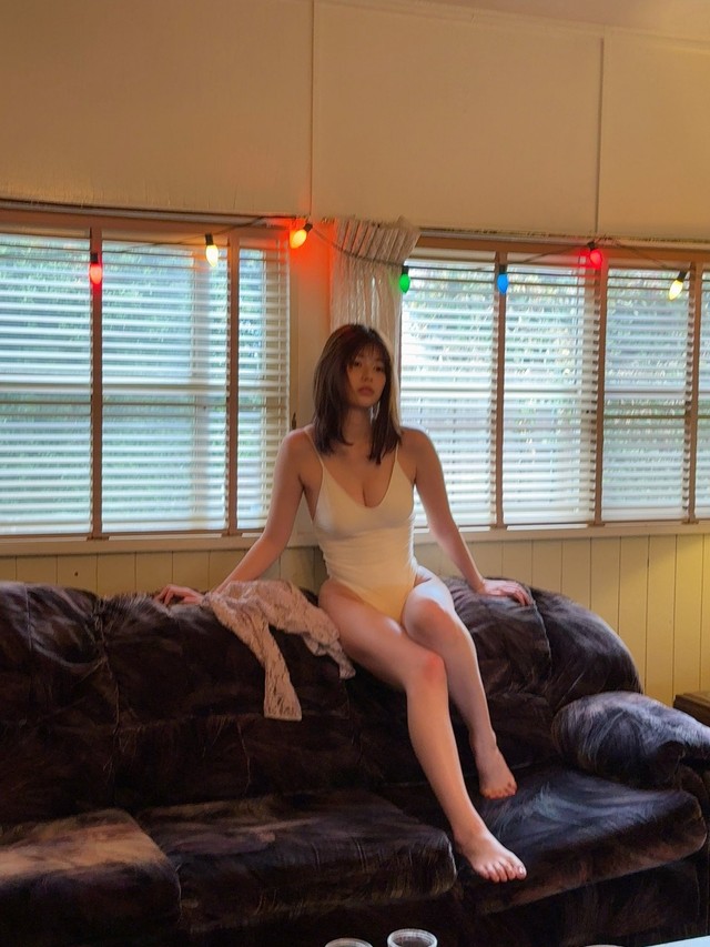 アイドル卒業から1年 透き通るような陶器肌の正統派美女 胸元あらわな白ワンピ水着で悩殺