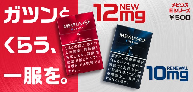 日本たばこ産業(JT)は主力ブランド「メビウス」の500円価格帯商品であるイーシリーズから、新商品「メビウス・イーシリーズ・12」を発売すると発表した。価格は500円で、5月25日より全国のコンビニエンスストアやたばこ販売店などで順次販売される。