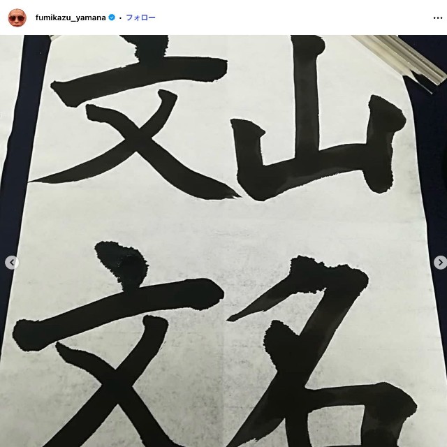 山名さんは2019年、自身のインスタグラムに「一月から書道始めたんよ。週一くらいで、早朝に習ってます。ばちくそ、楽しい。小さい時からやっといたら良かった」と投稿。先生が書いた見本と、自身の字を比較し、「一枚目、先生。二枚目以降、俺。皆、覚えといて!今の力。めちゃくちゃに、うまなるわ!! また、うまなったら、ここ載せるわ!」と決意を示していました。