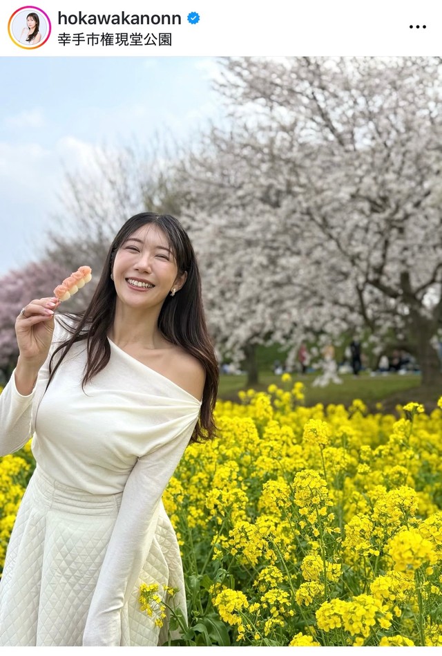 【写真】お花見団子を手にこの笑顔!「めっちゃかわいい」「花より団子かな?」