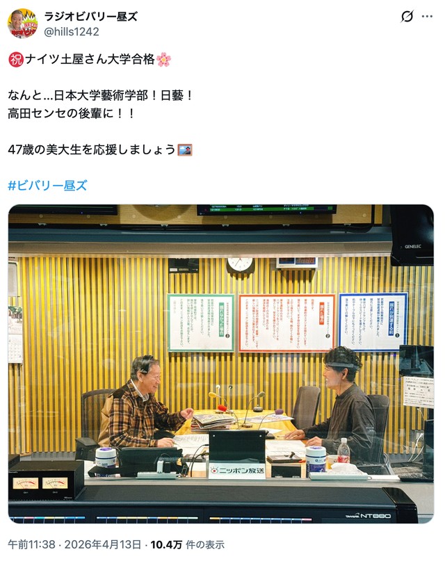 「ええええ!!」47歳で大学生に!ナイツ土屋さん、合格した大学名を公表→「まさかの!」「尊敬します」感心する人続出
