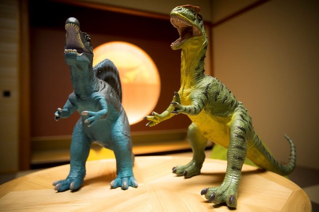 また、折々に美しい表情を見せる日本庭園、坂井平野を見渡せる展望大浴場などで、芦原温泉らしさを満喫できる「グランディア芳泉」(あわら市)には「恐竜ルーム」(定員5名)が2室。和の空間で大人も子どももゆったりと恐竜の世界に浸れます。さらに「恐竜ルーム」宿泊者限定でノベルティのプレゼントも。