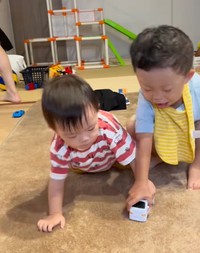 まだ赤ちゃんの弟にメロメロな3歳と1歳のお兄ちゃん 兄弟愛あふれる動画が425万再生「一生懸命お兄ちゃんしてる♡」![]()